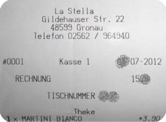 Eine Aufmerksamkeit, die der Speisekarte nicht zuteil wurde. Denn genauso wie auf der Rechnung traf der Restaurantinspektor hier auf die Vergangenheit. Bei beiden stand nicht Rodolfo, sondern La Stella auf der Titelseite bzw. oben auf dem Kassenbon. Ebenso übrigens an den den Fensterscheiben. Da muss also noch nachgebessert werden.