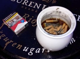 Auch nicht gelungen präsentierte sich um kurz vor 18 Uhr, also nur eine halbe Stunde nach der Öffnung, der Aschenbecher vor dem Piwo & Vino.