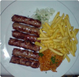 Mit ihrem "Fang", den Cevapcici mit Djuwetschreis, Pommes frites, Salat von der Salattheke (10,90€) und extra bestellter Knoblauchsauce (2,20€) zeigte sich Eurowoman durchaus zufrieden. Gut, viel falsch machen kann ein Koch da auch nicht.