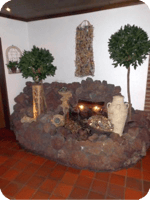 Einen Gang, den der Gast übrigens nicht auf den letzten Drücker antreten sollte. Denn im Gang zu den im Keller liegenden Toiletten rauscht der kleine Brunnen, der irgendwie nicht so ganz in das Münsterland bzw. zu einem Gasthof zu passen schien.