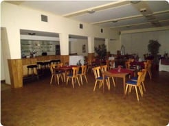 Rustikaler und stimmiger, mehr nach dem, was Gast erwarten würde, wirkte da schon der große Saal (Rechtes Bild).
