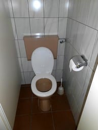 Unverwechselbar allerdings im Sinne von optischem Grauen sind die Toiletten mit ihren Toilettensitzen in weiß.